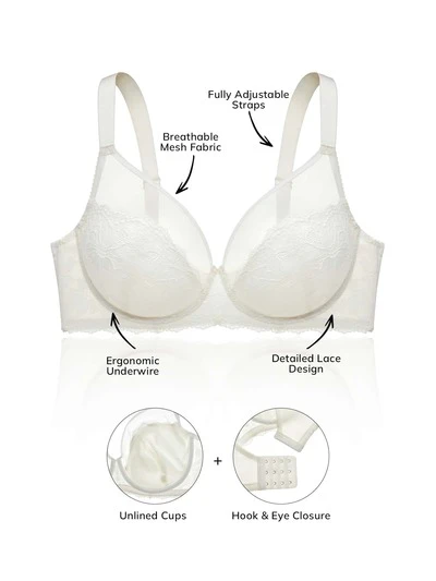 Plus Soft Woman Lingerie Lounge Curve Sheer Full Coverage Support&Breathable Underwire Sexy Unlined Minimizer Lace Elegance & Mesh White Bra Bridal Intimates Wedding Bra-15%