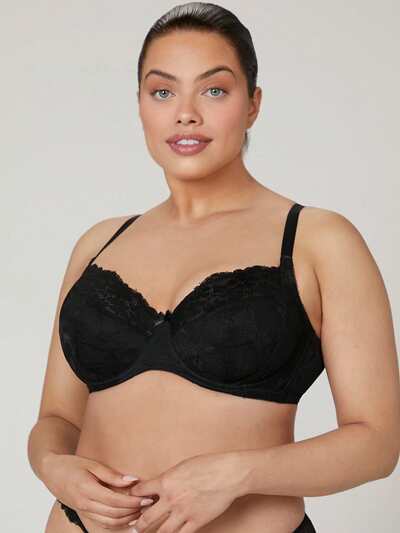 Plus Woman Full Coverage Black Lingerie Lounge Curve Support & Breathable Underwire Sexy Unlined Minimizer Lace Elegance Bra Bridal Intimates-50%