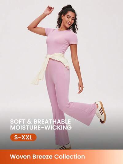 Super Soft Basic Crew Neck Short-Sleeve Top & Flare Pant Loungewear Pajama Set-15%