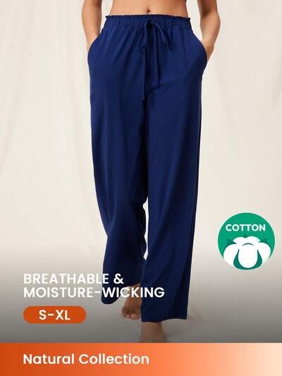 Lila weiches Baumwoll- und Modal-Lässig-Langzeit-Damen-Pyjama-Set, Loungewear-SetsSommer Blaue weiche Stoff Weit Passende Damen 100% Reine Baumwolle Luftige Damen Pyjama Hose Lingerie als Oberbekleidung Culotte Baumwoll Pyjamas