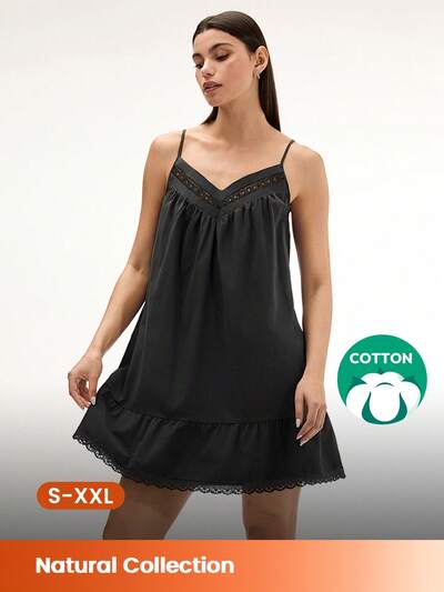 Sommer Damen Große Größen Super Weiche TENCEL™ Modal Schwarzes Nachthemd Lingerie Slip Kleid Babydoll Braut Wäsche & Pyjama Kleider Sommer Kleider für Frauen