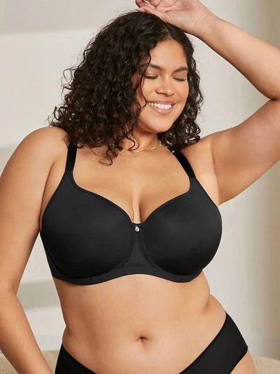 Soutien-gorge minimaliste de confort aérien en maille noire, avec maintien latéral, sans armatures, à coupe complète, de la marque Plus Dream Curve