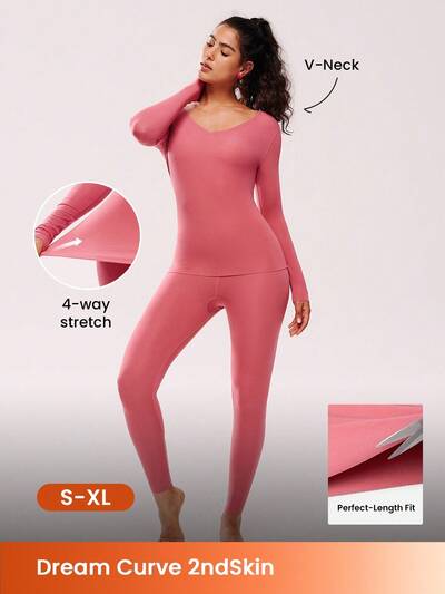 女性用サーマルアンダーウェア 超ソフト ベースレイヤー 寒冷地用 暖かい冬用パジャマセット Vネックトップ&ロングボトム - 薄手で暖かいブラウンレッドセット-15%