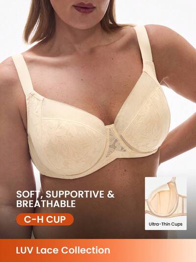 ヌード系ランジェリー ラウンジ カーブ フルカバレッジ サポート&通気性 ワイヤー入り シアー セクシー アンラインド エアリー レース エレガンス 快適 ミニマイザーブラ-30%