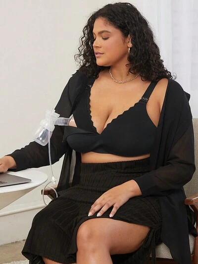 Plus Black Sexy Lingerie Full Coverage Unline Push-Up Floral Lace Elegance Breezy Comfort Minimizer Bra-50%