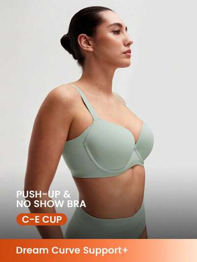 Koszulka Dream Curve Support+ Side Support z fiszbinami w kolorze zielonym, z push-upem, podstawowy, wygodny, bezszwowa, niezbędna, bez prześwitów, zielony biustonosz