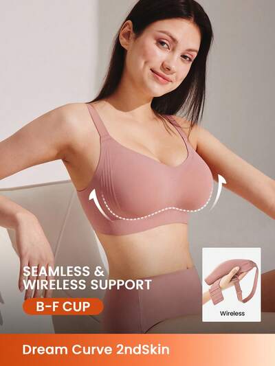 Sutiã de Descanso Dream Curve 2ndSkin Sem Fio com Cobertura Total, Suporte Lateral Sem Costura, Sutiã Bralette Rosa, Sutiã Básico Sem Marca, Roupa Íntima para Exercícios, Tamanho Livre-20%